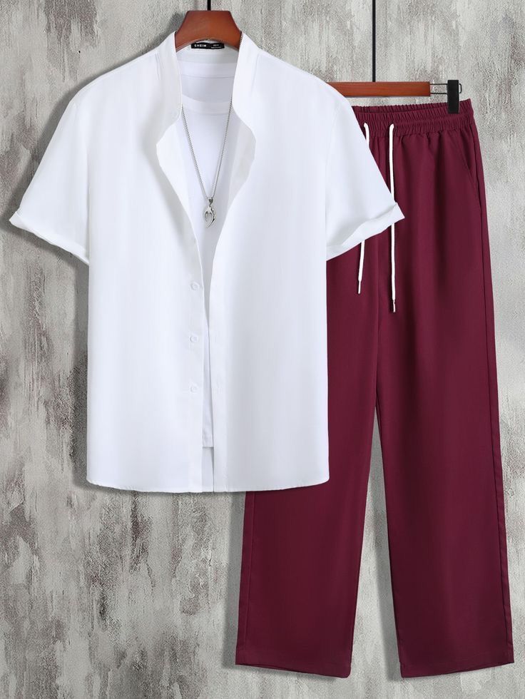 A stylish two-piece casual outfit featuring a soft short-sleeve button-down shirt and matching trousers. Perfect for relaxed outings, warm-weather events, or everyday comfort with a clean, modern look. ₵320.00
